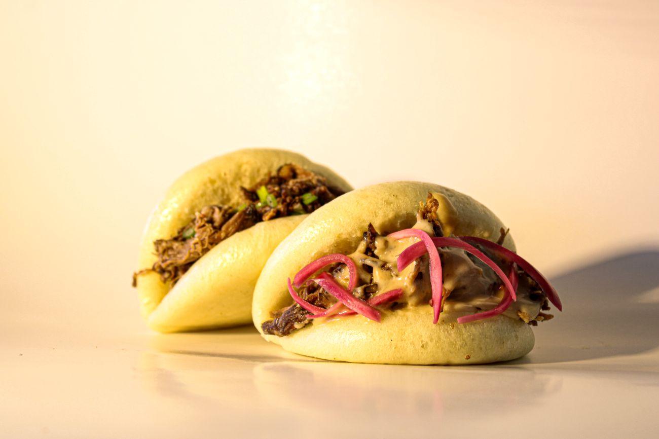 bao bun ekmeği, odun ateşinde pişmiş kaburga tiftik, demi glace soslu mayonez, yeşil soğan, 200 gr patates kızartması ile